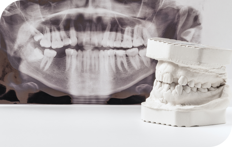 Des radiographies panoramiques et céphalométriques, des photographies intra et extra-orales ainsi que des empreintes dentaires sont réalisées.